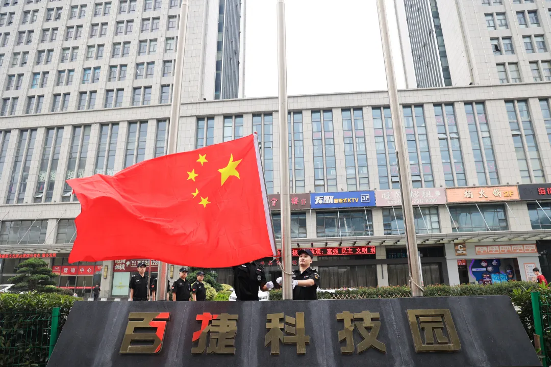 清晨八時,百捷科技園舉行了,簡單但莊重的升旗儀式,伴隨著莊嚴的國歌,鮮艷的五星紅旗在人們的注目禮中升向頂端,隨風飄揚在江夏的天空中,在中華人民共和國成立74周年之際,百捷用自己的方式祝愿祖國繁榮昌盛、國泰民安